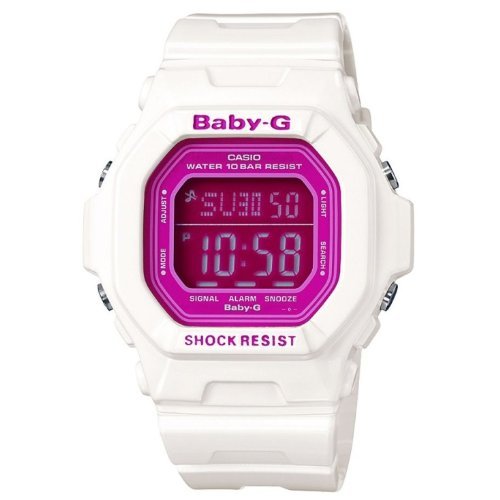 Shock resistant, with a stylish, streamlined white resin band and fun hot pink dial, this digital Watch from Casio's Baby-G Collection hits all the right fashion notes. This sleek timepiece features an LED light, world time, and five daily alarms. Secure and comfortable on the wrist, thanks to an adCasio Women's Baby-G Watch BG5601-7 Do not Miss!! Shock resistant, with a stylish, streamlined white resin band and fun hot pink dial, this digital Watch from Casio's Baby-G Collection hits all the right fashion notes. This sleek timepiece features an LED light, world time, and five daily alarms. Secure and comfortable on the wrist, thanks to an ad... Casio Women's Baby-G Watch BG5601-7