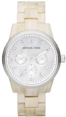Stainless steel case measures 36mm diameter by 12mm thick. Plastic resin link bracelet includes a convenient and tasteful push button hidden deployment clasp. Chic mother of pearl dial has silver tone hands and hour markers. Date and day displays. The precise Quartz movement is protected by a scratcMichael Kors Women's MK5625 Ritz Alabaster Watch Do not Miss!! Stainless steel case measures 36mm diameter by 12mm thick. Plastic resin link bracelet includes a convenient and tasteful push button hidden deployment clasp. Chic mother of pearl dial has silver tone hands and hour markers. Date and day displays. The precise Quartz movement is protected by a scratc... Michael Kors Women's MK5625 Ritz Alabaster Watch