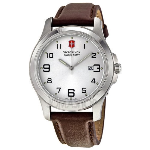 Stainless steel case with a brown leather strap. Fixed stainless steel bezel. Silver dial with silver-tone hands and Arabic numeral hour markers. Dial Type: Analog. Date display at the 3 o'clock position. Quartz movement. Scratch resistant mineral crystal. Solid case back. Case diameter: 40 mm. RounVictorinox Swiss Army Men's VICT241385.CB Class Analog Stainless Steel Watch Do not Miss!! Stainless steel case with a brown leather strap. Fixed stainless steel bezel. Silver dial with silver-tone hands and Arabic numeral hour markers. Dial Type: Analog. Date display at the 3 o'clock position. Quartz movement. Scratch resistant mineral crystal. Solid case back. Case diameter: 40 mm. Roun... Victorinox Swiss Army Men's VICT241385.CB Class Analog Stainless Steel Watch